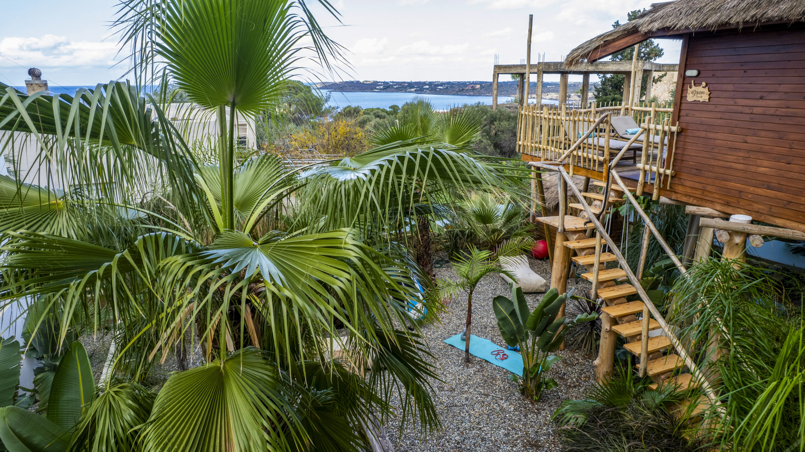 Perched high among the treetops, the treehouse offers a unique and luxurious retreat with breathtaking sea views. Inside, a king-size bed crafted from eco-friendly materials promises a restful sleep, enveloped by the soothing sounds of nature. The bed, with its plush, high-quality mattress and sumptuous linens, ensures unparalleled comfort. Designed with sustainability in mind, the treehouse features high-quality materials, including reclaimed wood and natural fibers, blending seamlessly with its surroundings. Large windows frame the stunning sea views, allowing natural light to flood the space and creating a serene, airy atmosphere. This exquisite treehouse combines luxury and eco-conscious living, providing a tranquil haven for those seeking a unique escape.