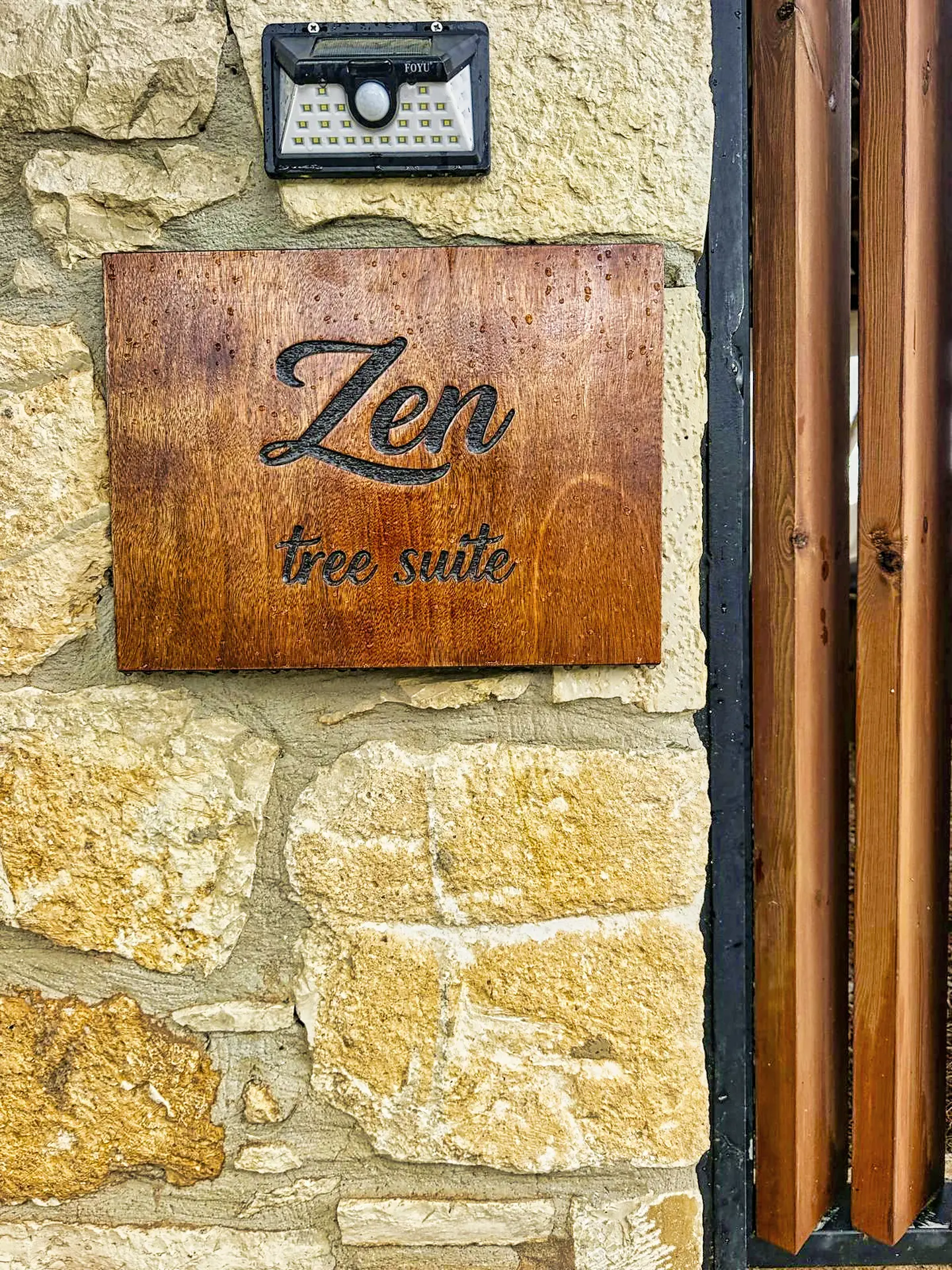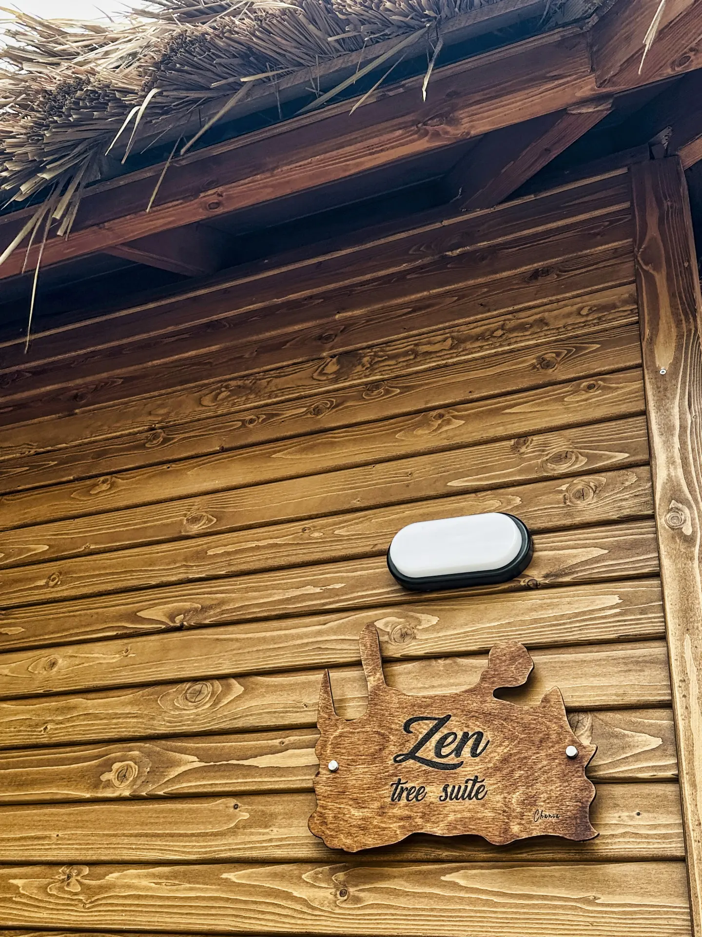 The interior of the ZEN Tree Suite follows a philosophy of simple elegance, using natural materials that soothe the eye and the soul. Reclaimed wood and earthy tones dominate, creating a warm and welcoming atmosphere. At the center sits the comfortable king-size bed with premium quality linens. The smartly designed kitchenette is fully equipped for your daily needs, while the small dining area is perfect for a quiet breakfast. Clean lines, soft lighting, and thoughtful details made from natural materials enhance the "Zen" feel, turning the inside of the treehouse into a true sanctuary of calm.