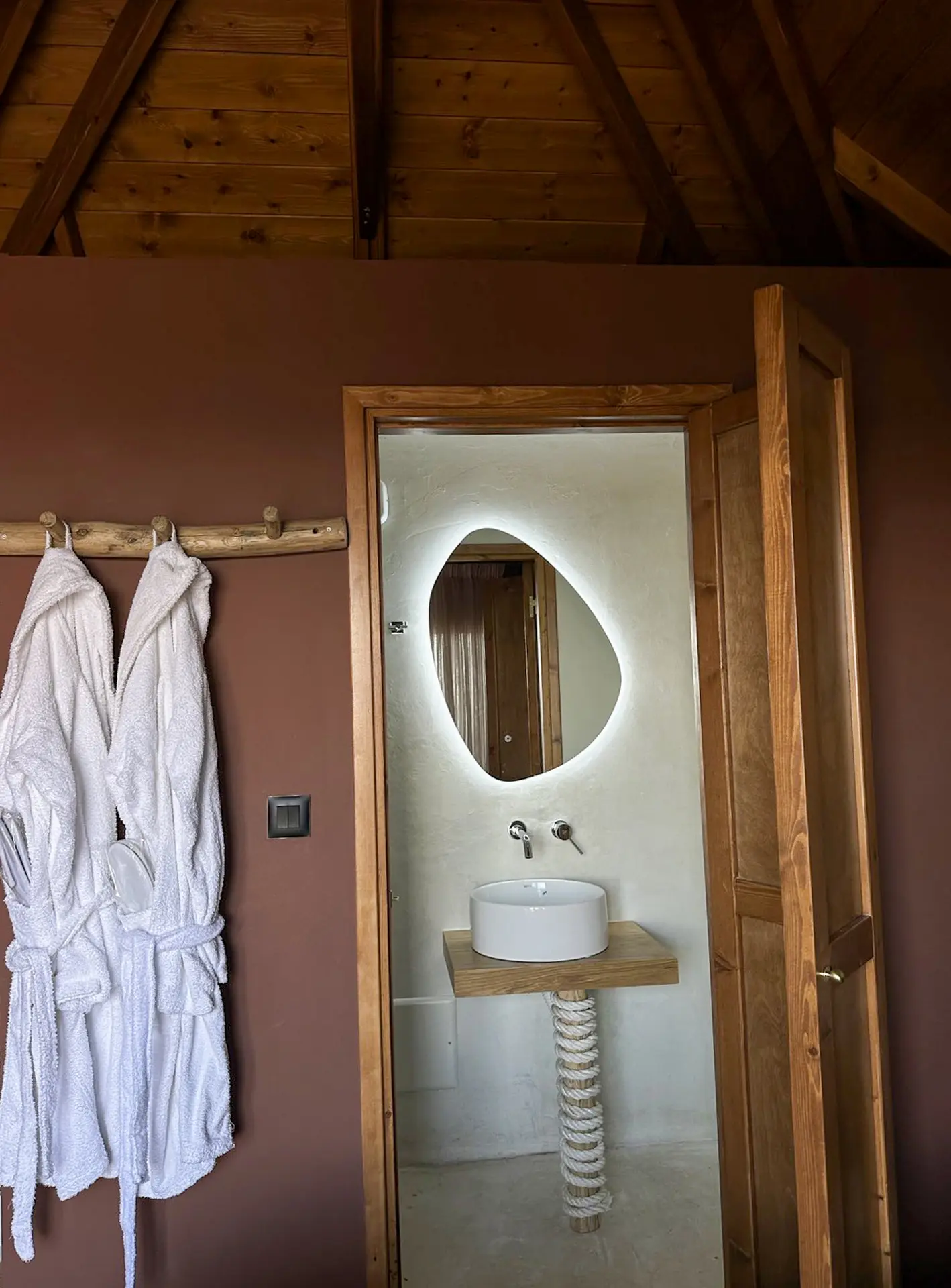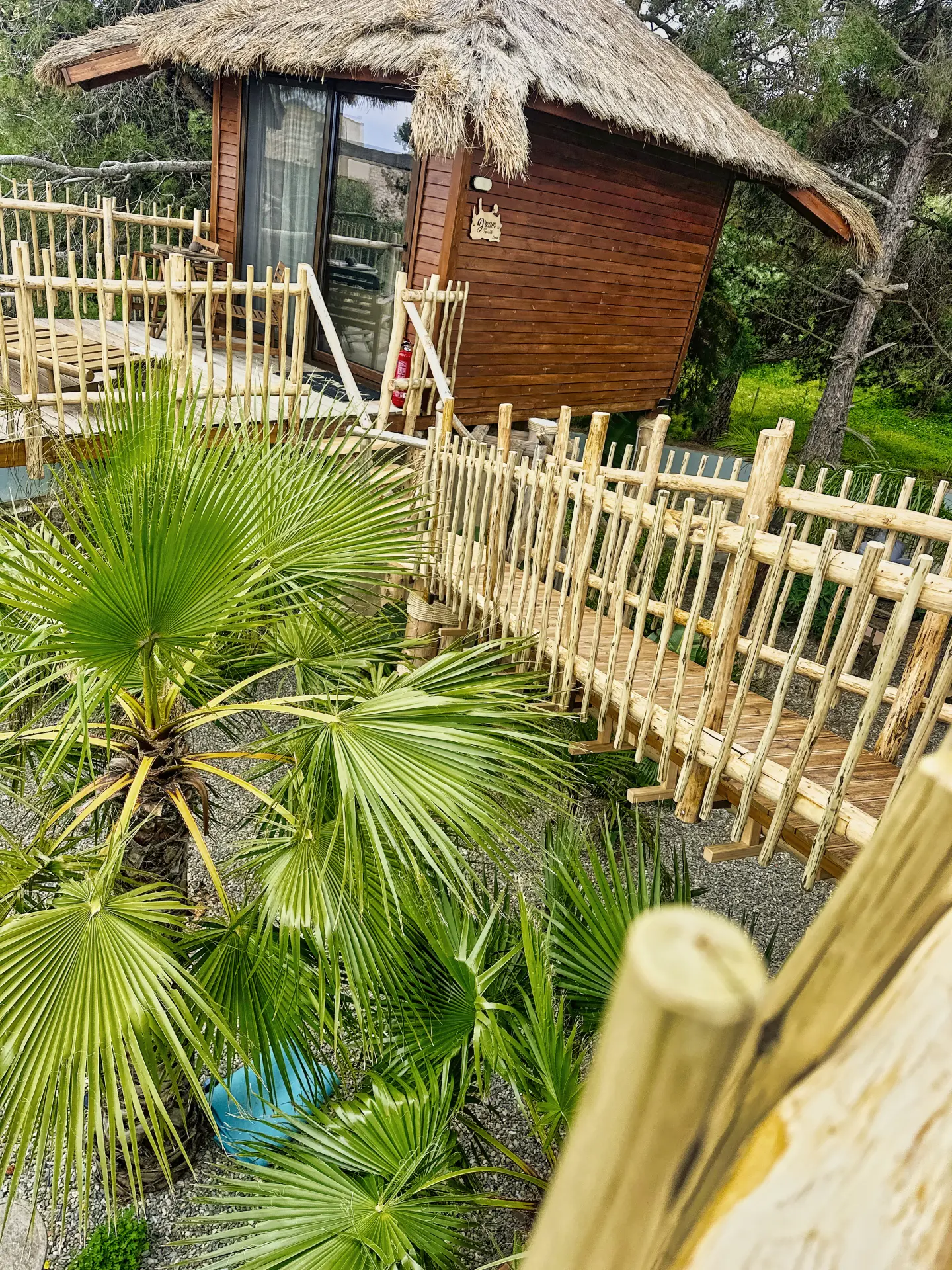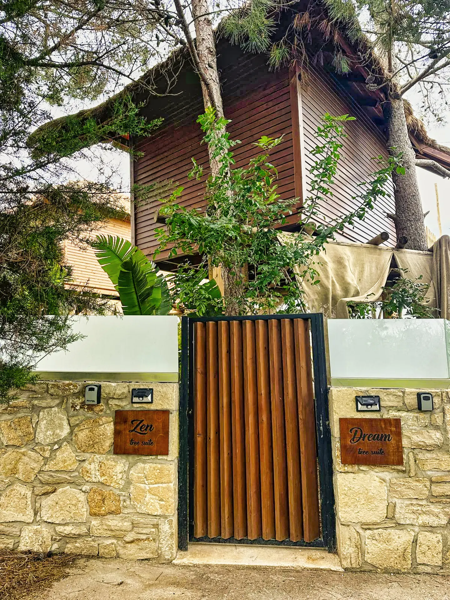 The outdoor area of the ZEN Tree Suite is your own personal observatory over the sea. The wooden terrace, fully integrated into the tree trunks, features comfortable furniture for enjoying the landscape at any time of day. The private jacuzzi is positioned to offer moments of relaxation with a view of the sunset, while the hammock and sun loungers invite you for a midday nap under the shade of the branches. Whether you choose to read your book in the quiet of the garden or gaze at the stars at night, the outdoor space is designed to offer you a deep connection with the environment.